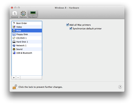 When you’d like to print from your Windows side, you will need to select Add all Mac Printers in the Mac’s Parallel’s virtual machine settings which is in the Configuration Settings ► Hardware ► Print setting.