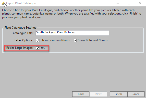 This option will attempt to automatically resize images on the creation of the Plant Picture Catalogue.